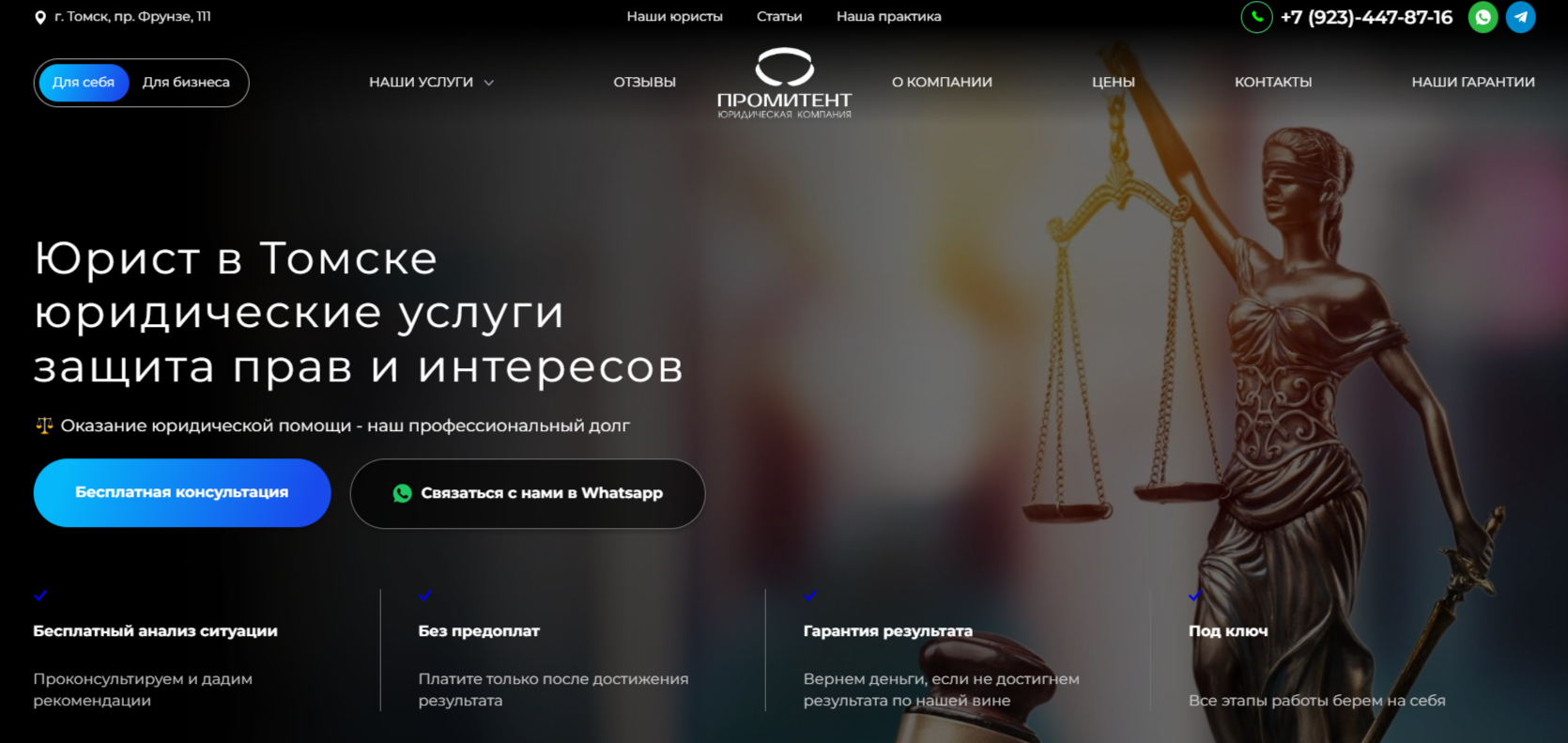 В современном мире юридическая поддержка становится важной составляющей защиты прав и интересов как граждан, так и бизнеса - юридическая компания в Томске предлагает квалифицированные услуги, которые помогут эффективно решить любые правовые вопросы. Благодаря комплексному подходу, персональному вниманию к клиентам и высокому профессионализму специалистов, «ПРОМИТЕНТ» заслуженно пользуется доверием и уважением среди жителей и предпринимателей региона.